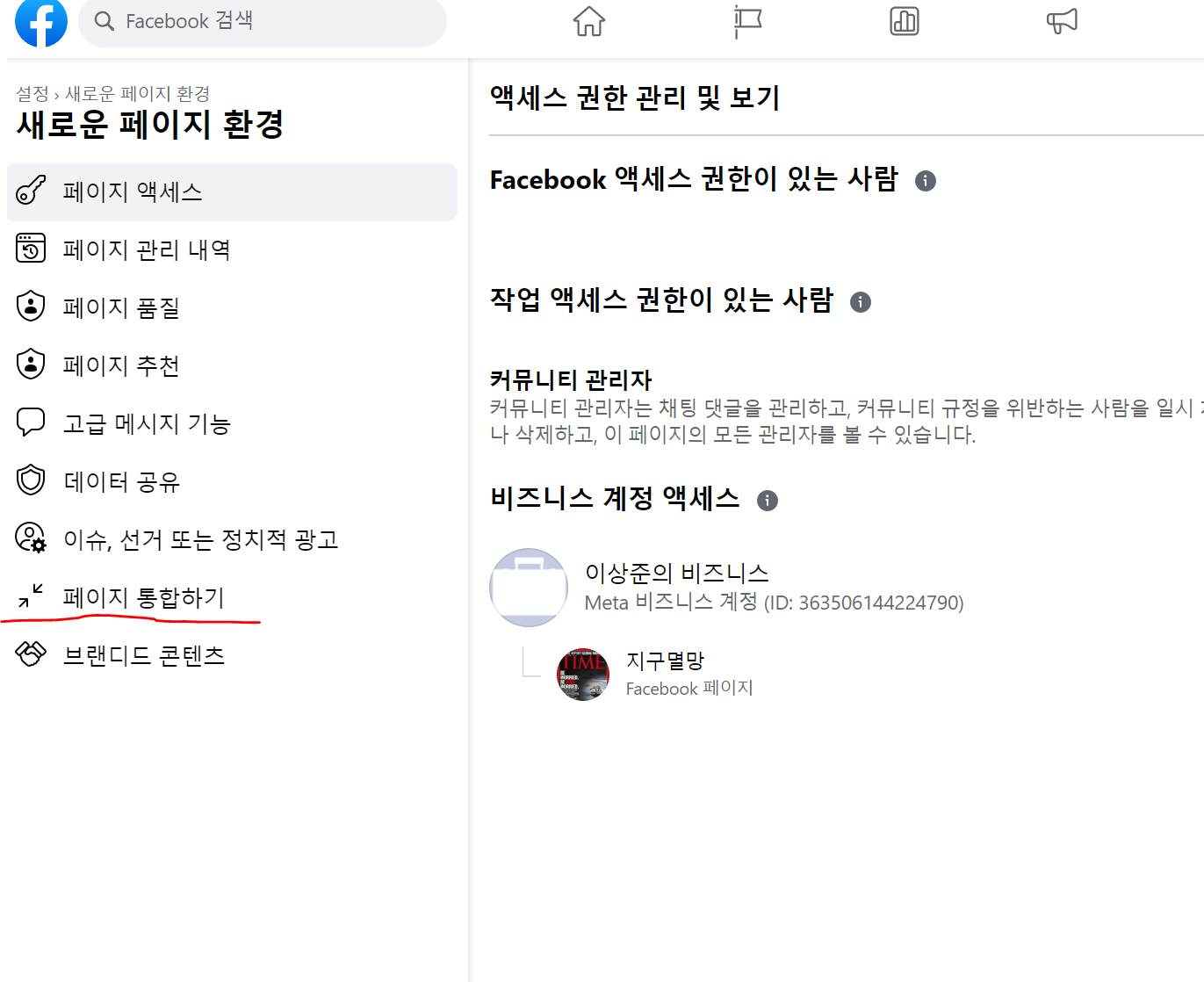페이스북 페이지를 통합하는 방법에 대해서 알아보겠습니다.
