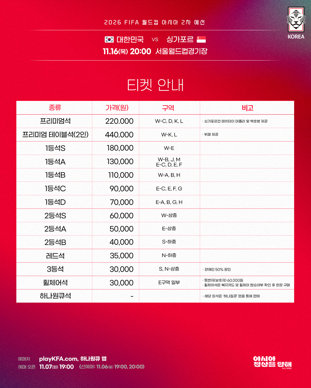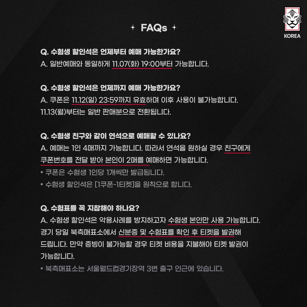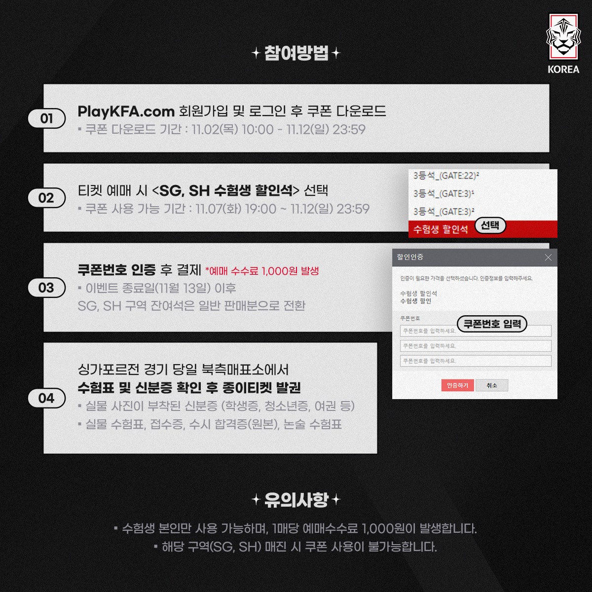 2024학년도 수능 응원 이벤트! 싱가포르전 무료 티켓 제공!
